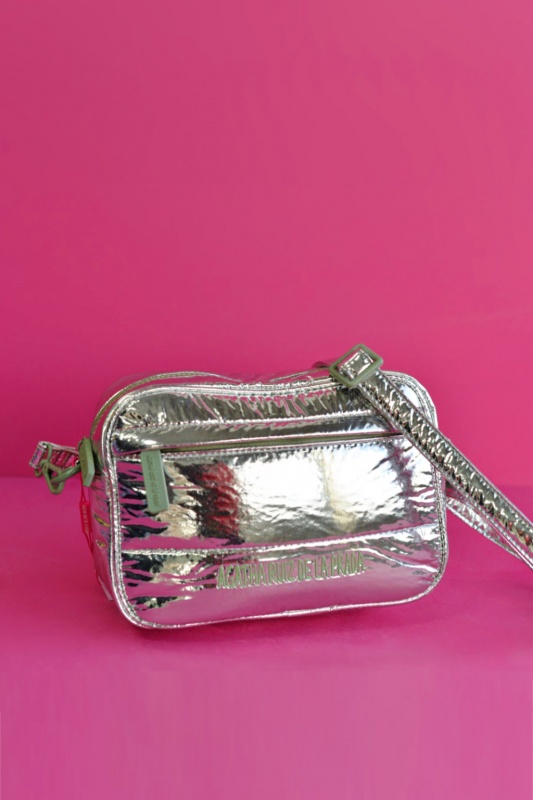 Mala a Tiracolo, acolchoado metalico com costura, fecho de correr.