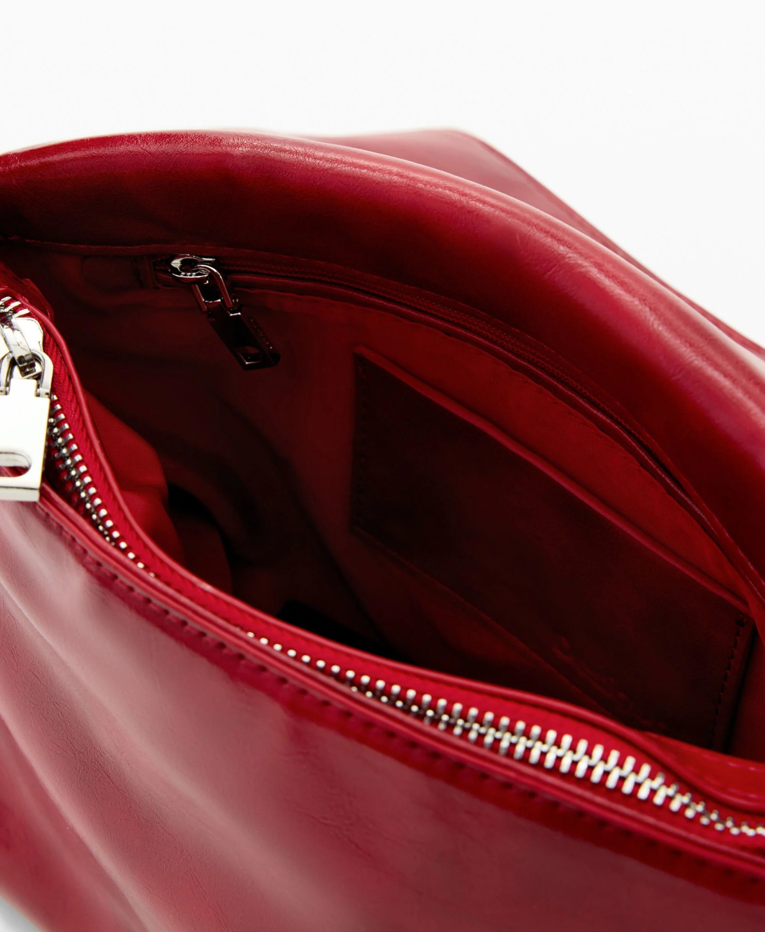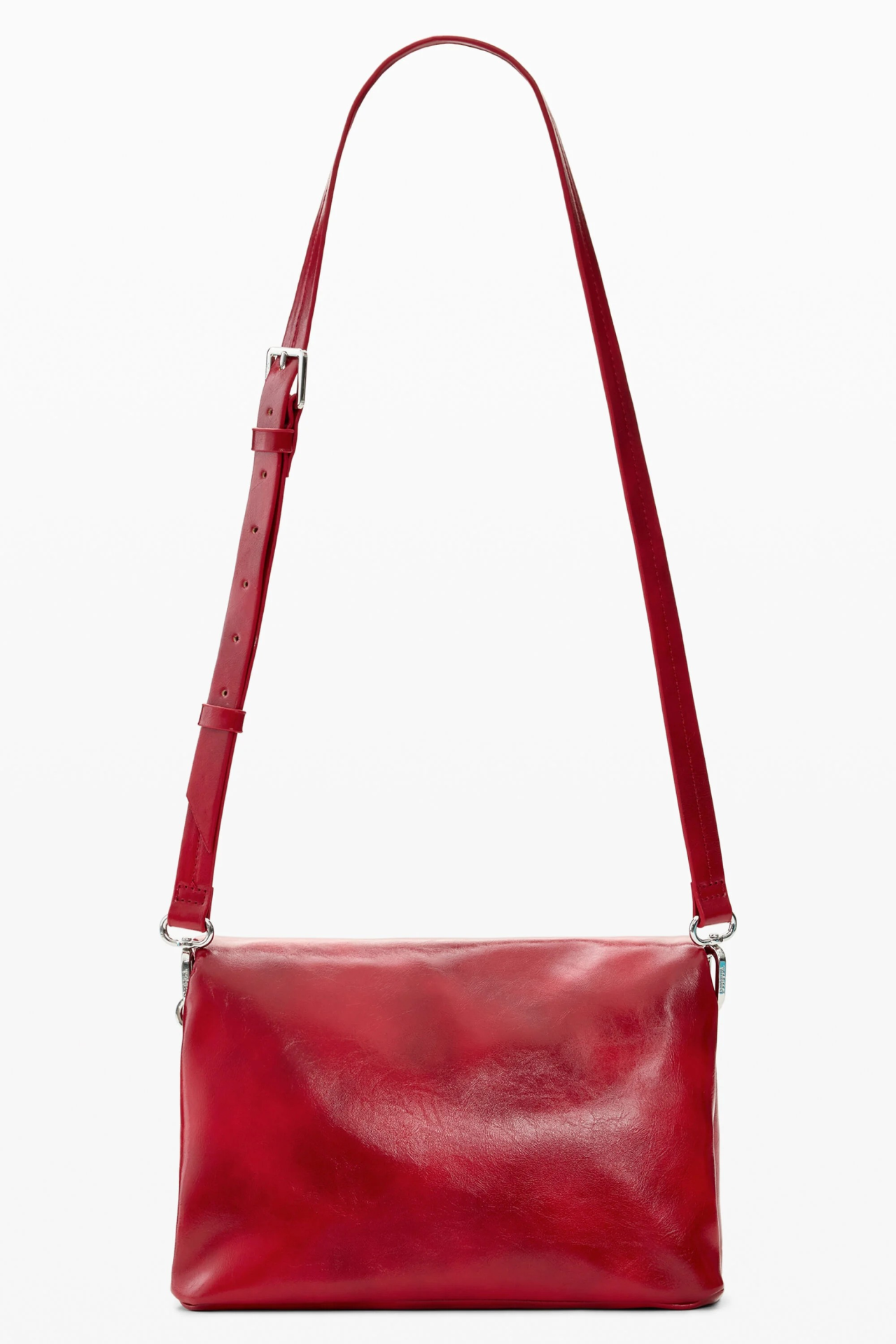 Bolsa média com aba, efeito pele, com alças intercambiáveis e charms com porta-cartões removível.
