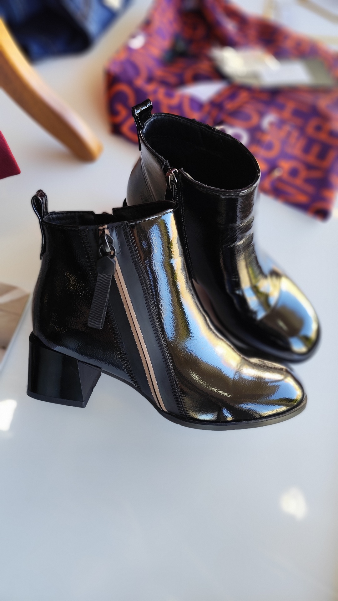 Botim de verniz com salto.
