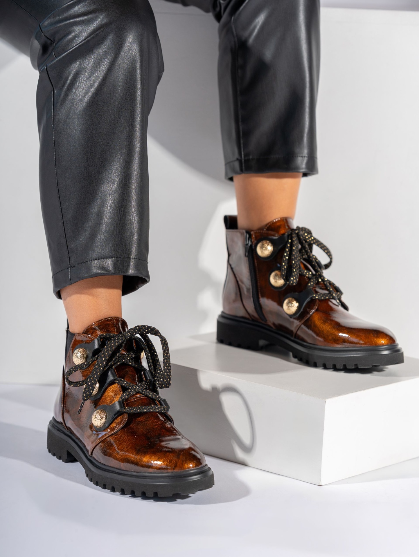 Os botins Raissa02 são fabricados em verniz suave, com palmilha conforto e sola leve para proporcionar uma marcha suave.