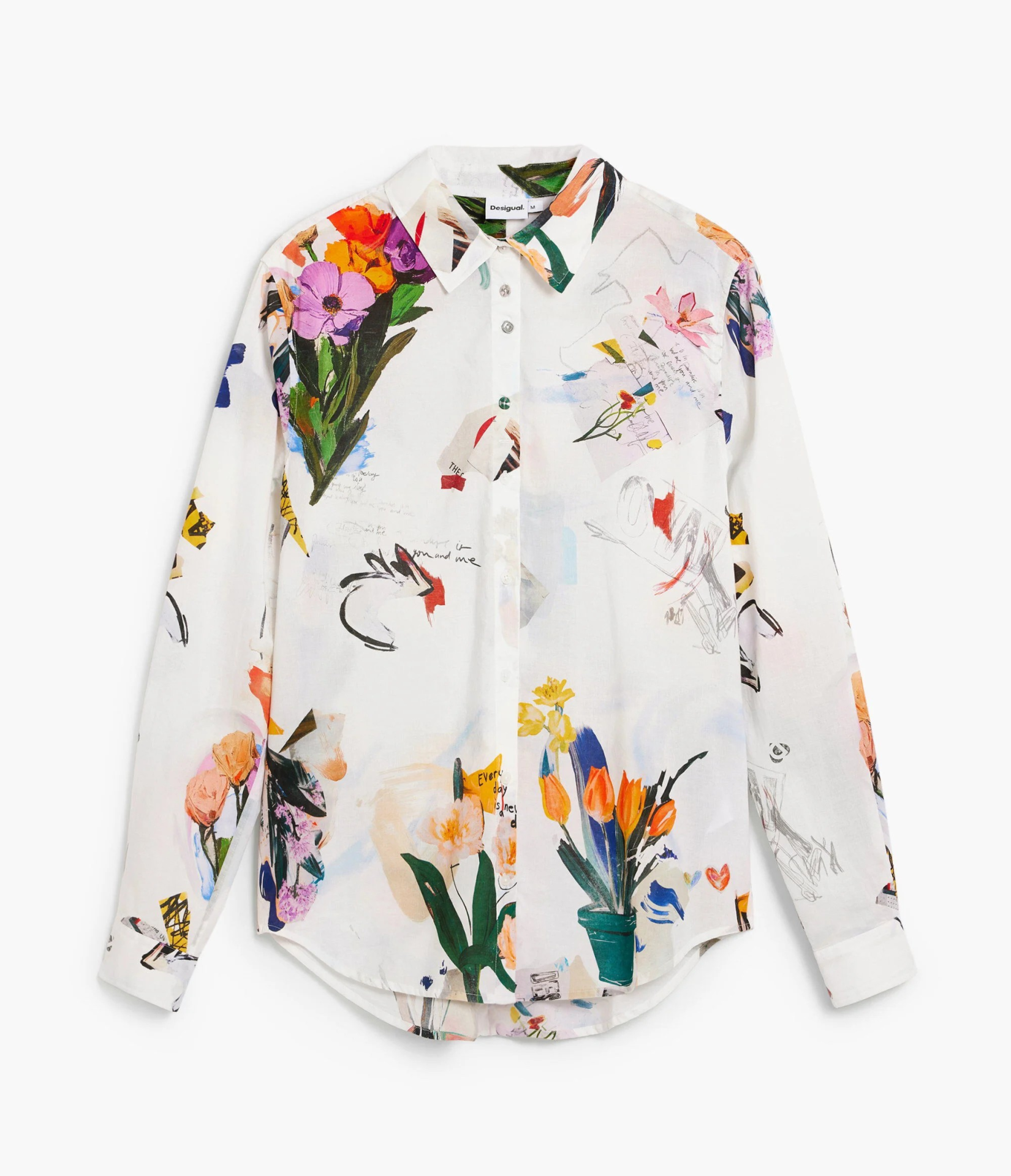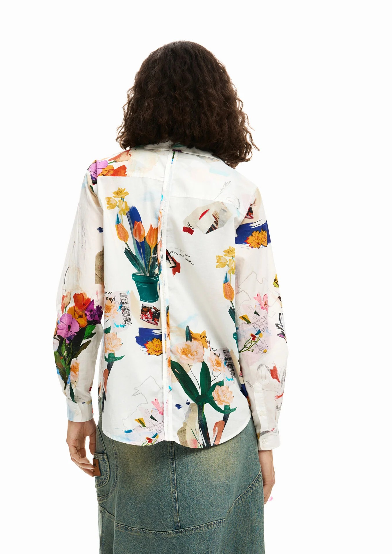Camisa de manga comprida de corte regular e estampa com efeito colagem com plantas e flores.