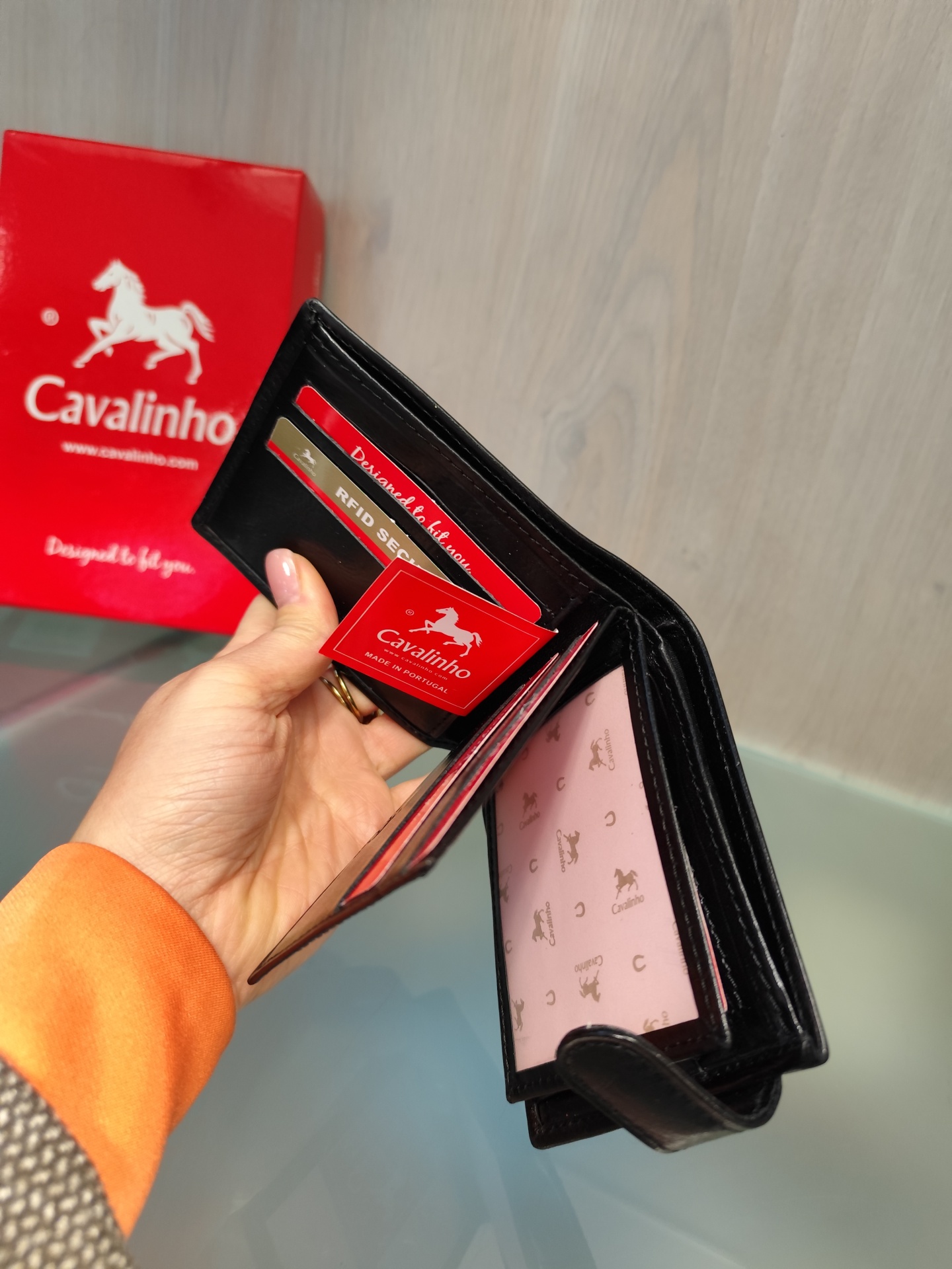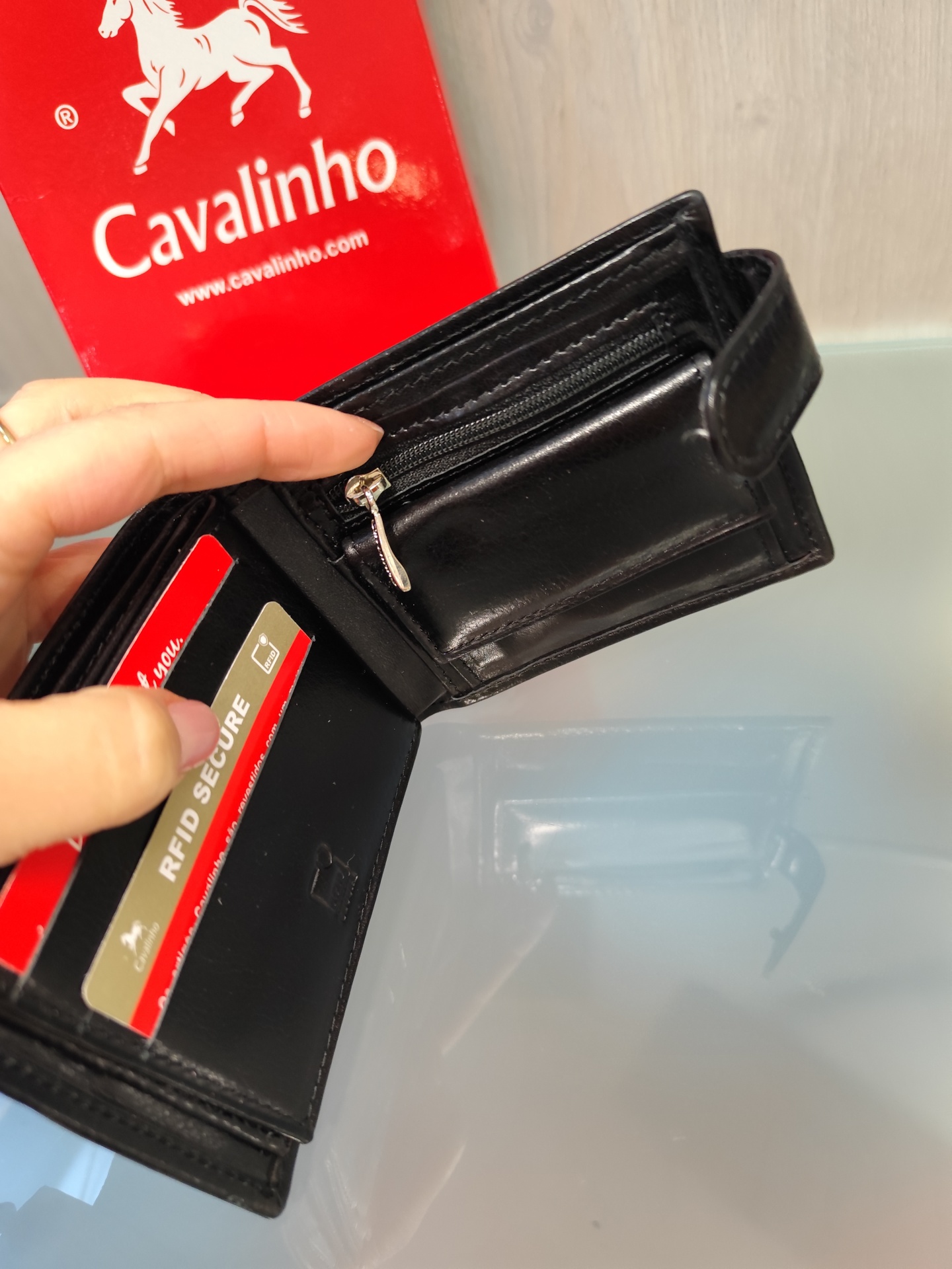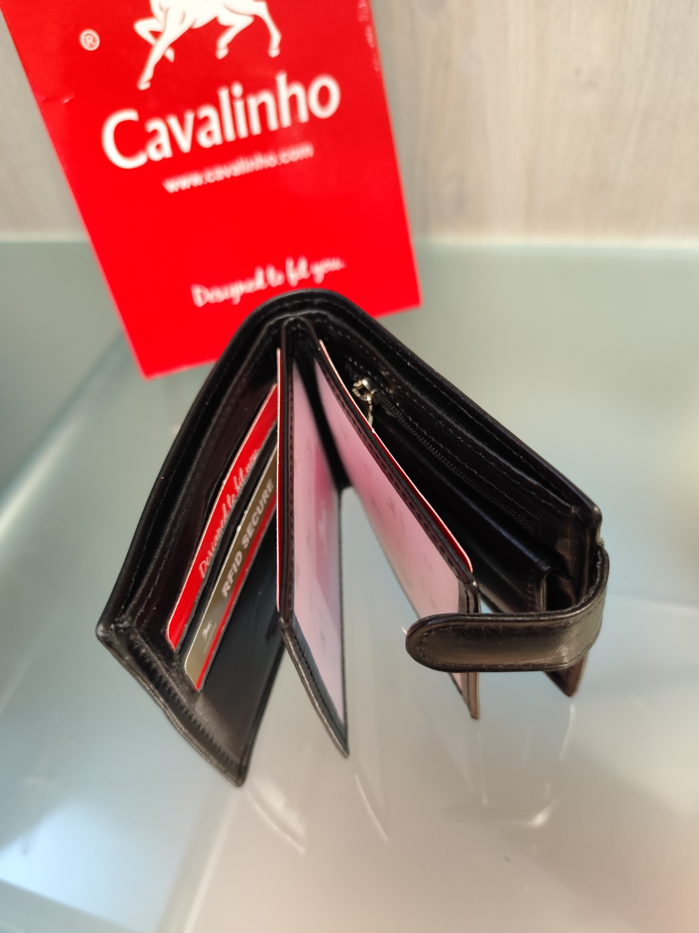 Carteira para homem com vários compartimentos para cartões.