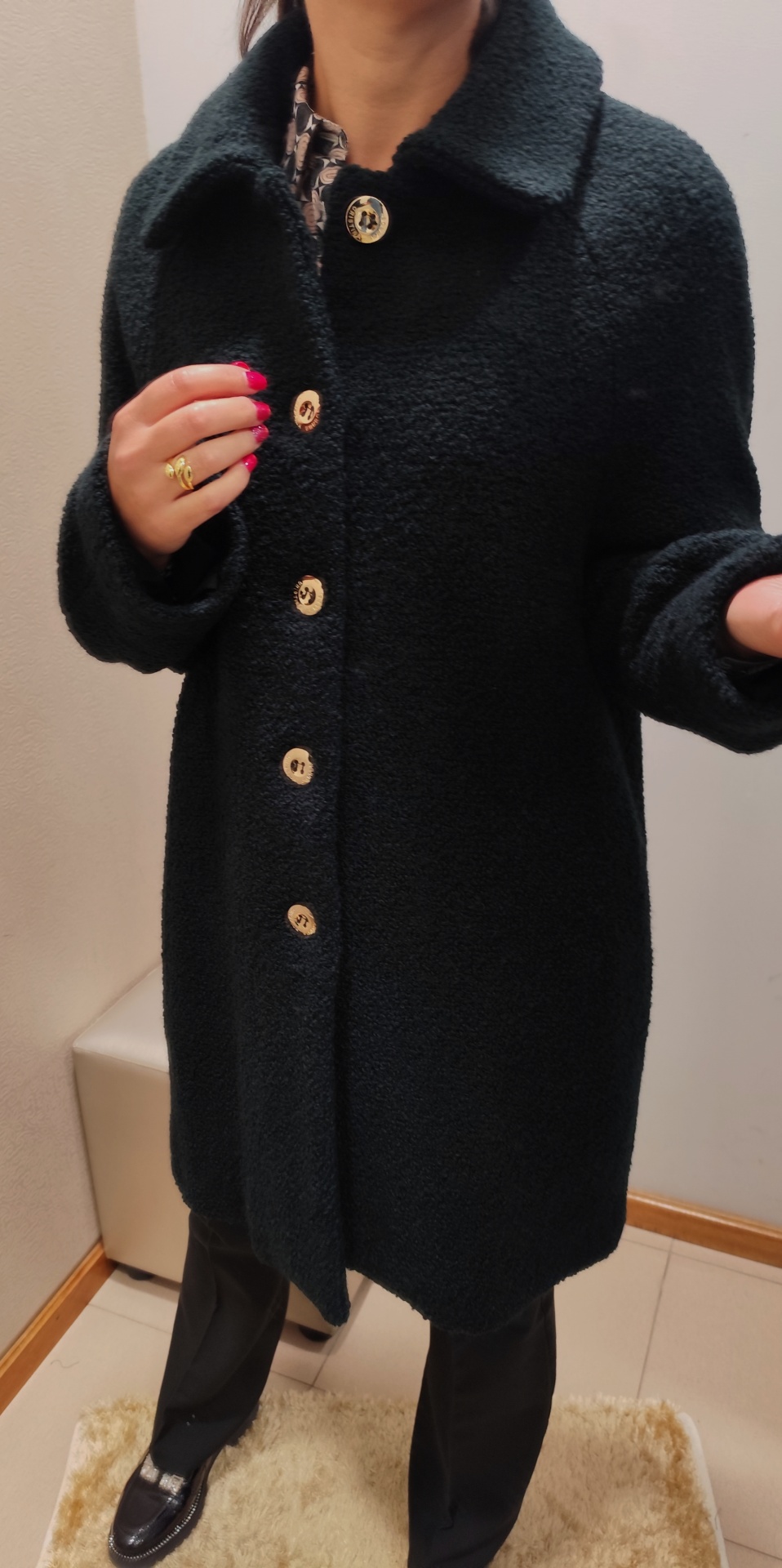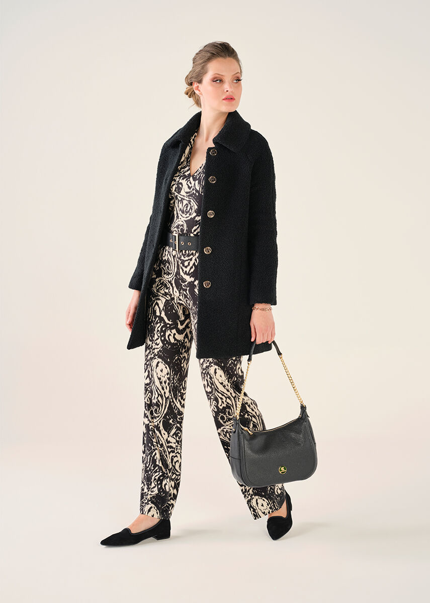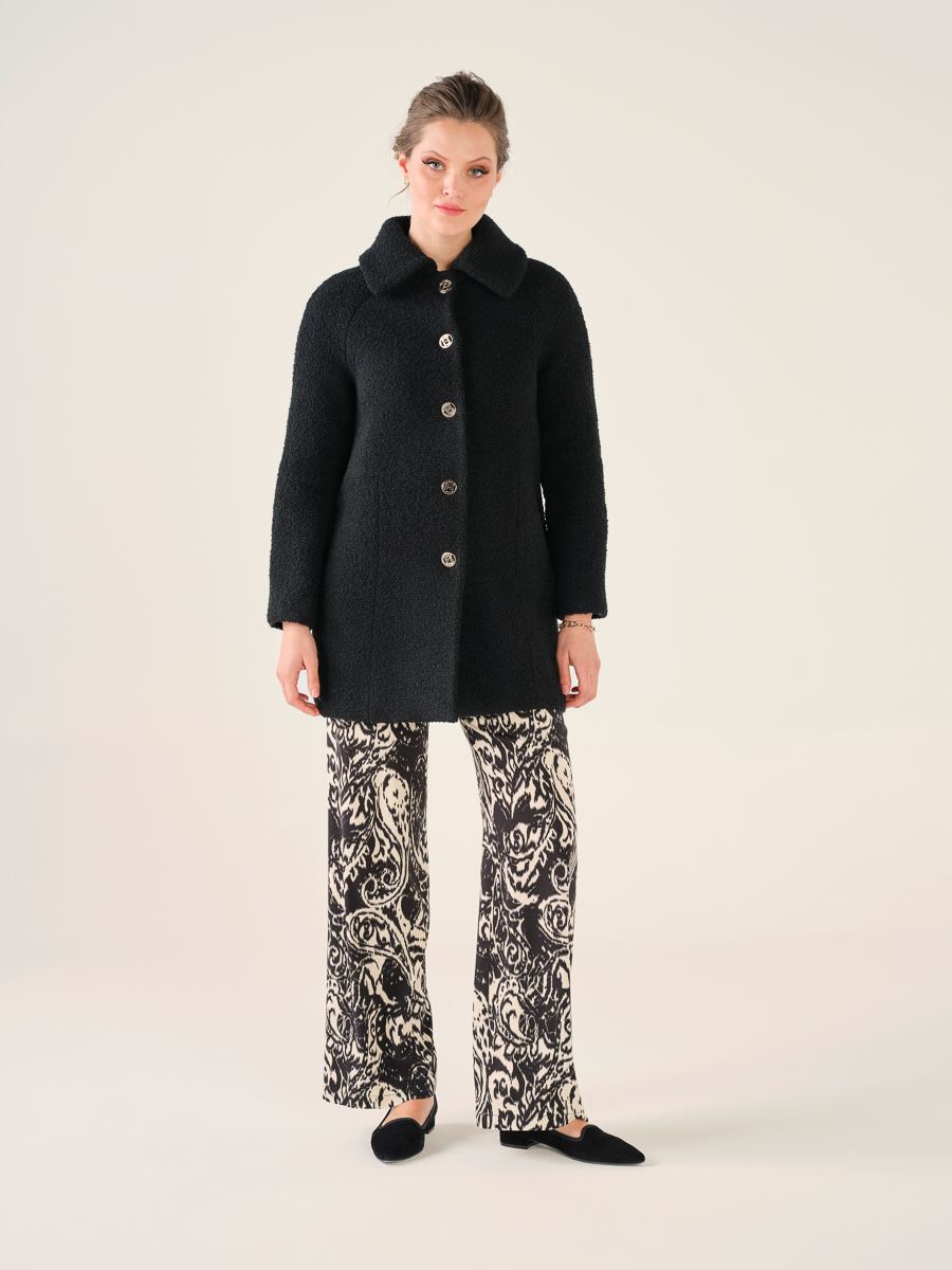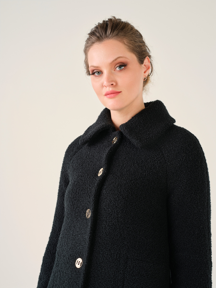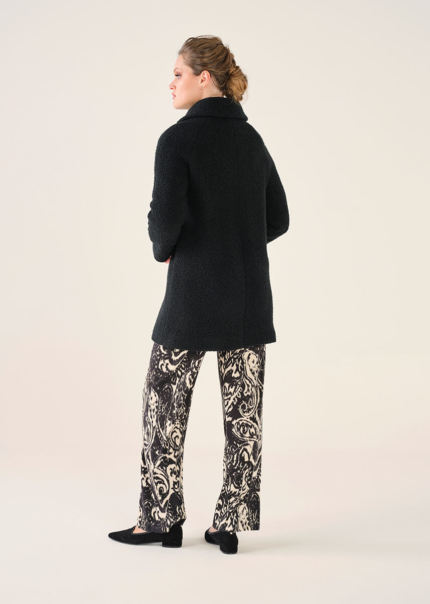 Casaco preto a 3/4, de caracolinho.