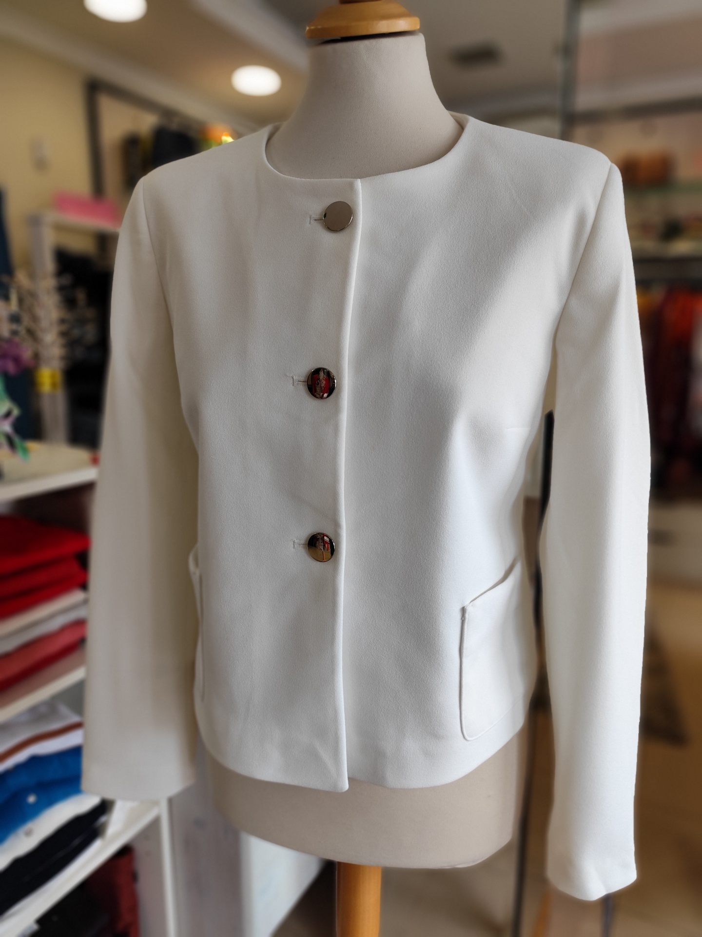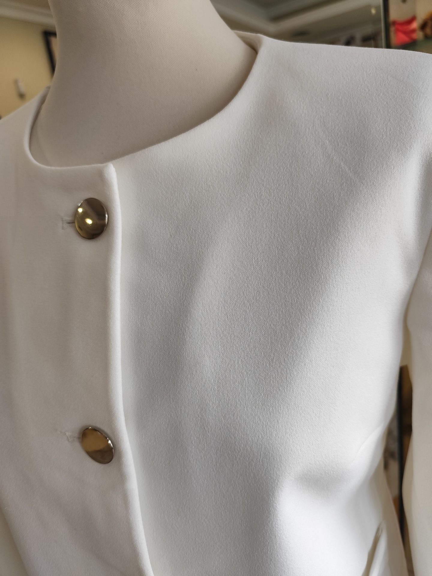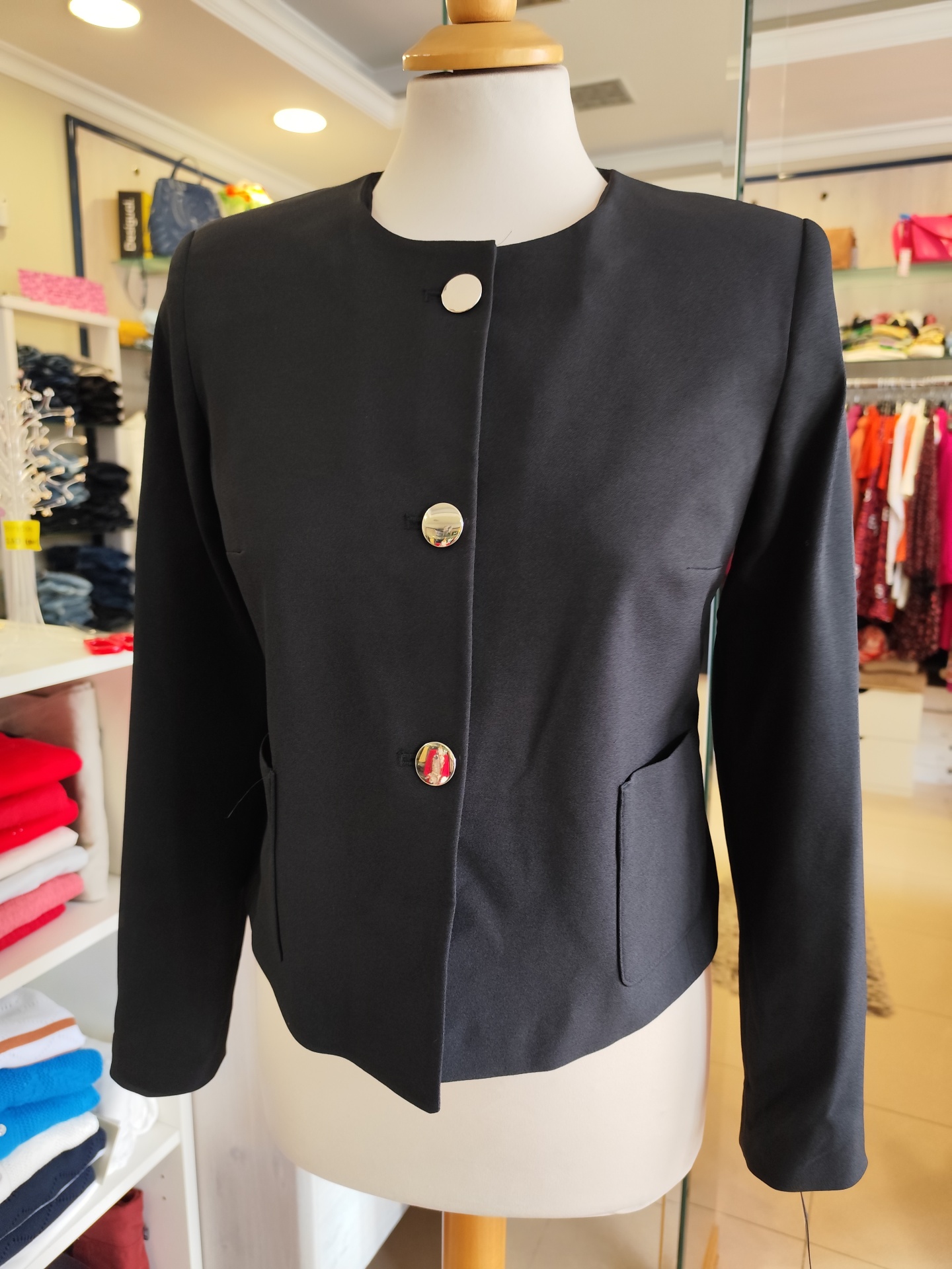 Com botões, sem gola e tecido elastico