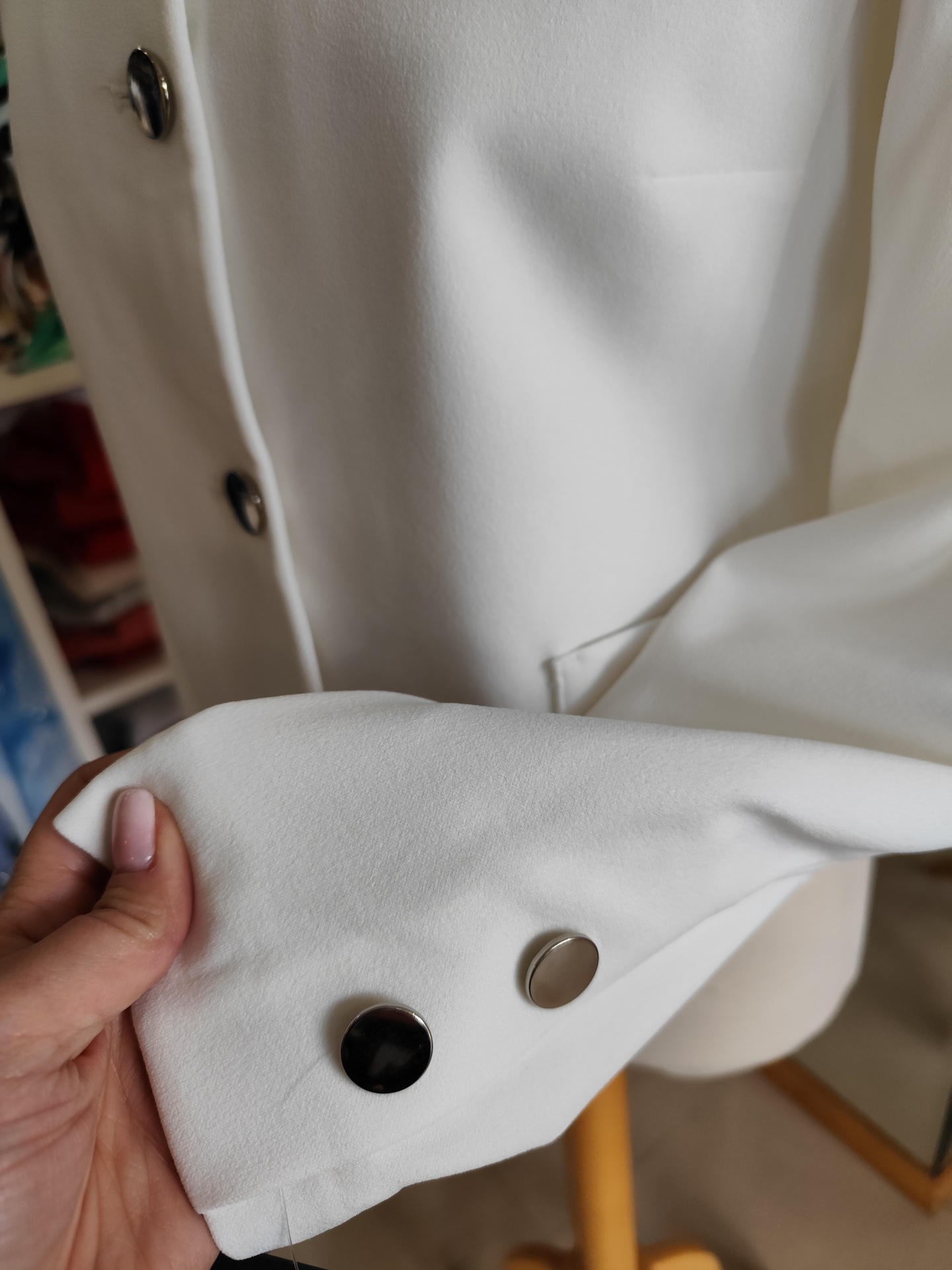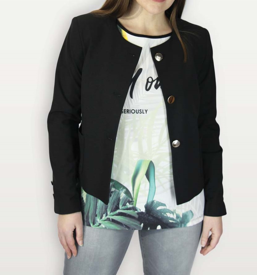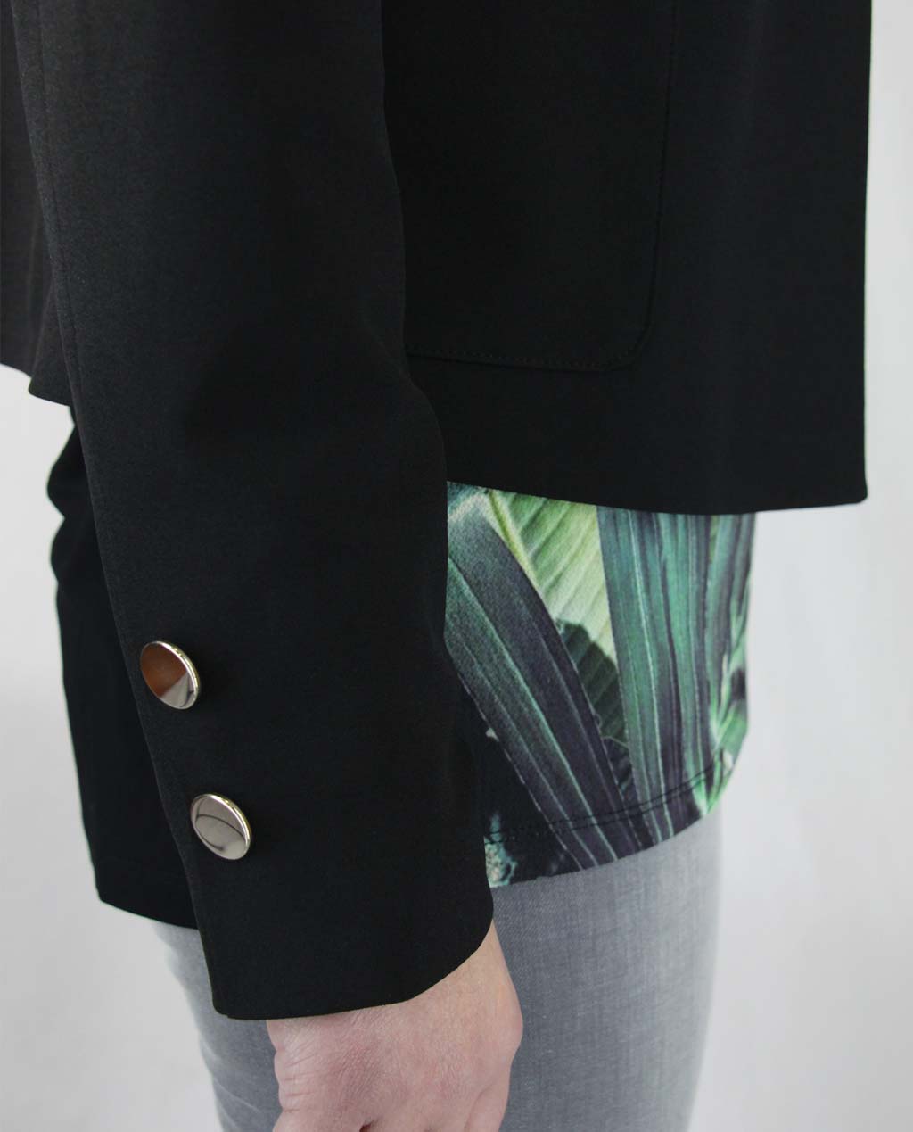 Com botões, sem gola e tecido elastico