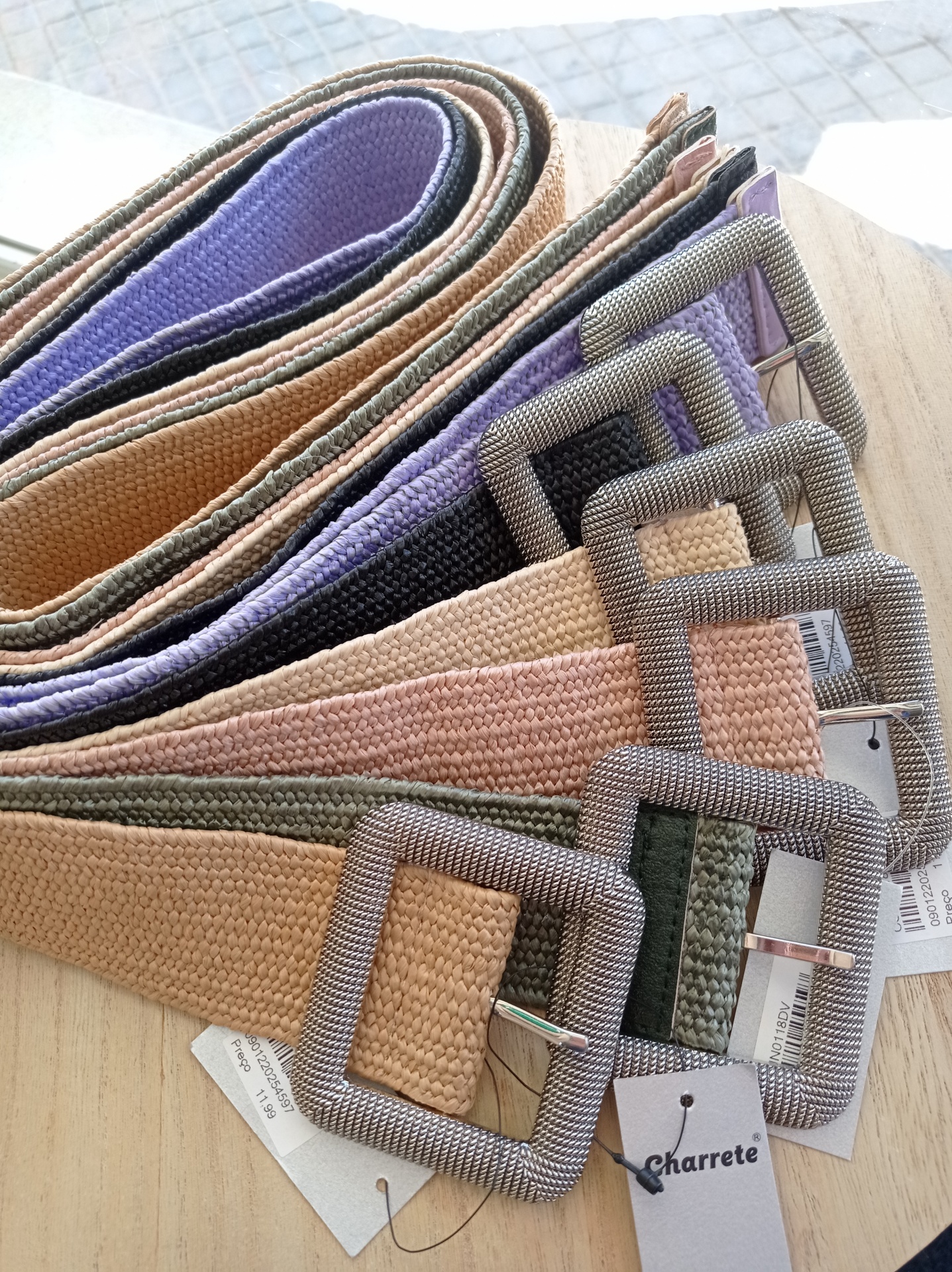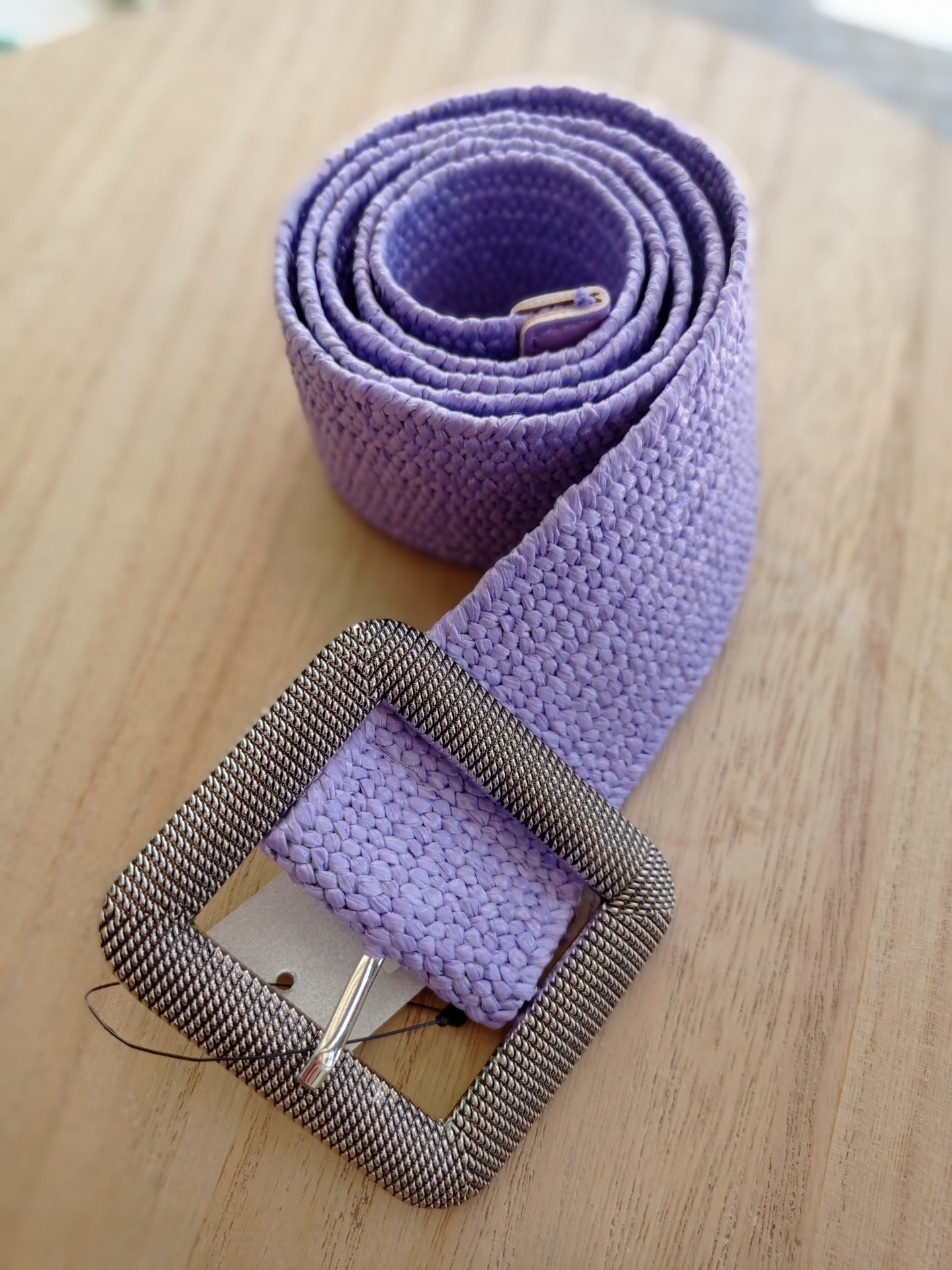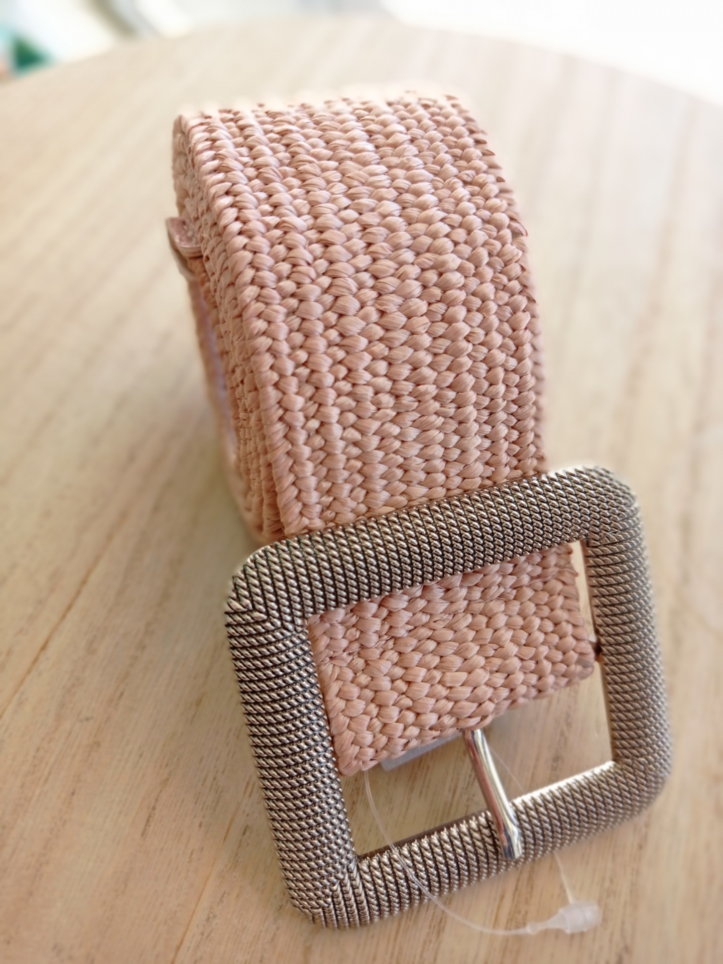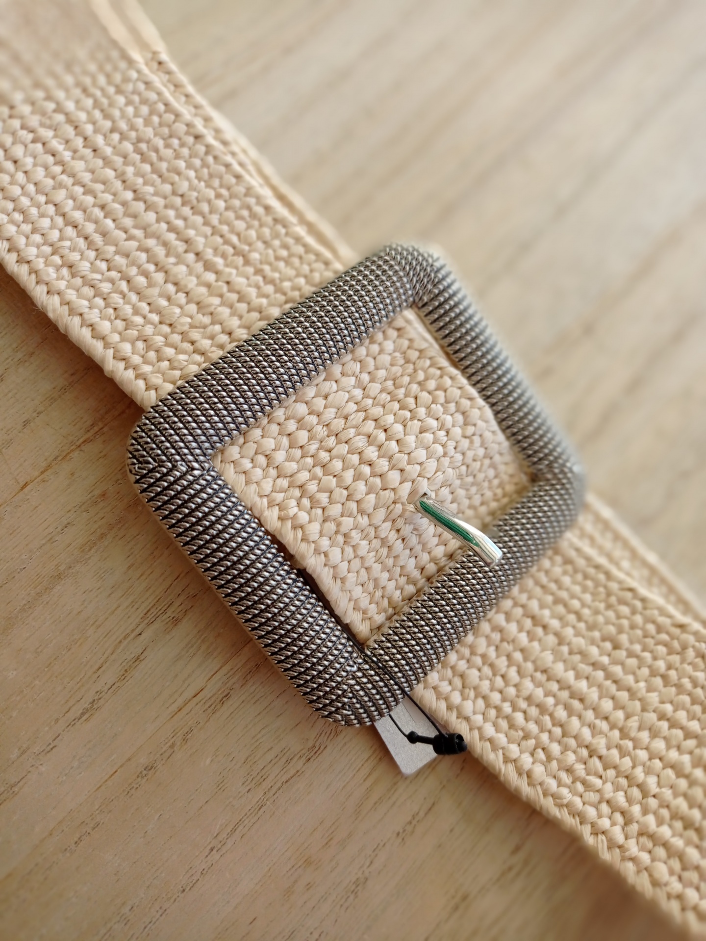 Cinto elástico com fivela quadrada em prateado.