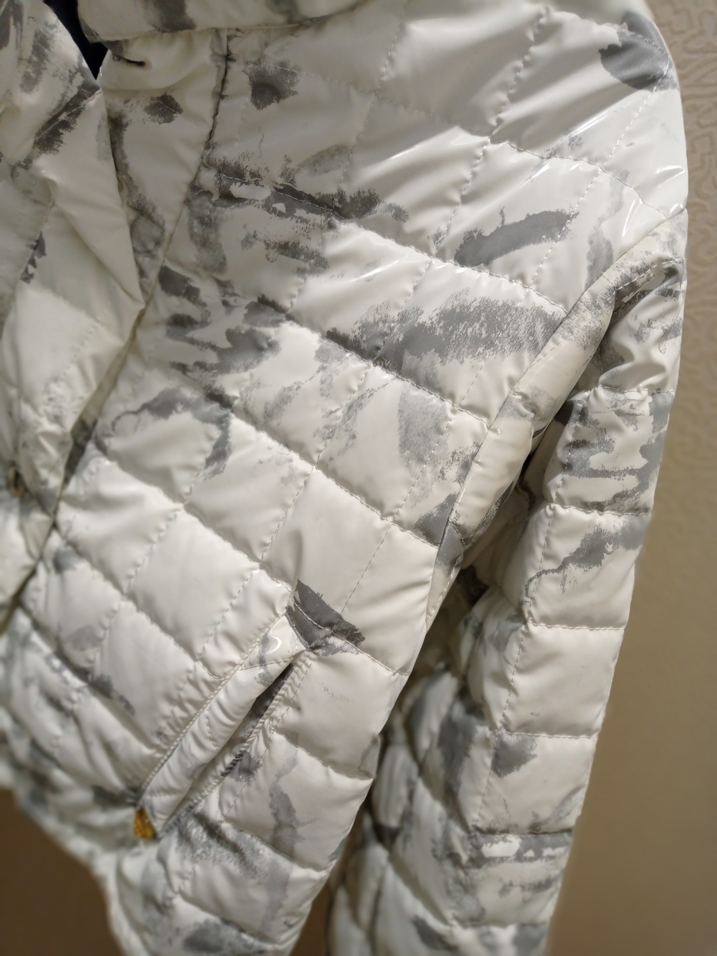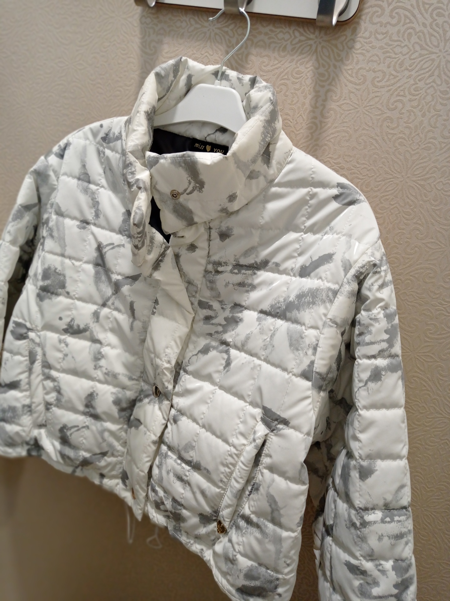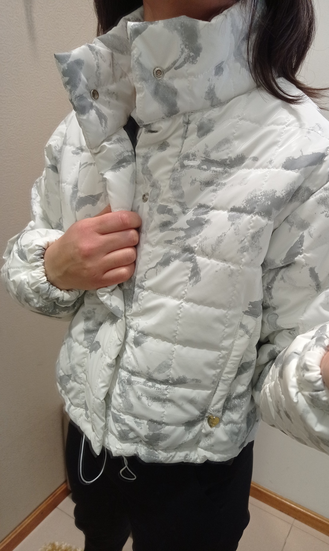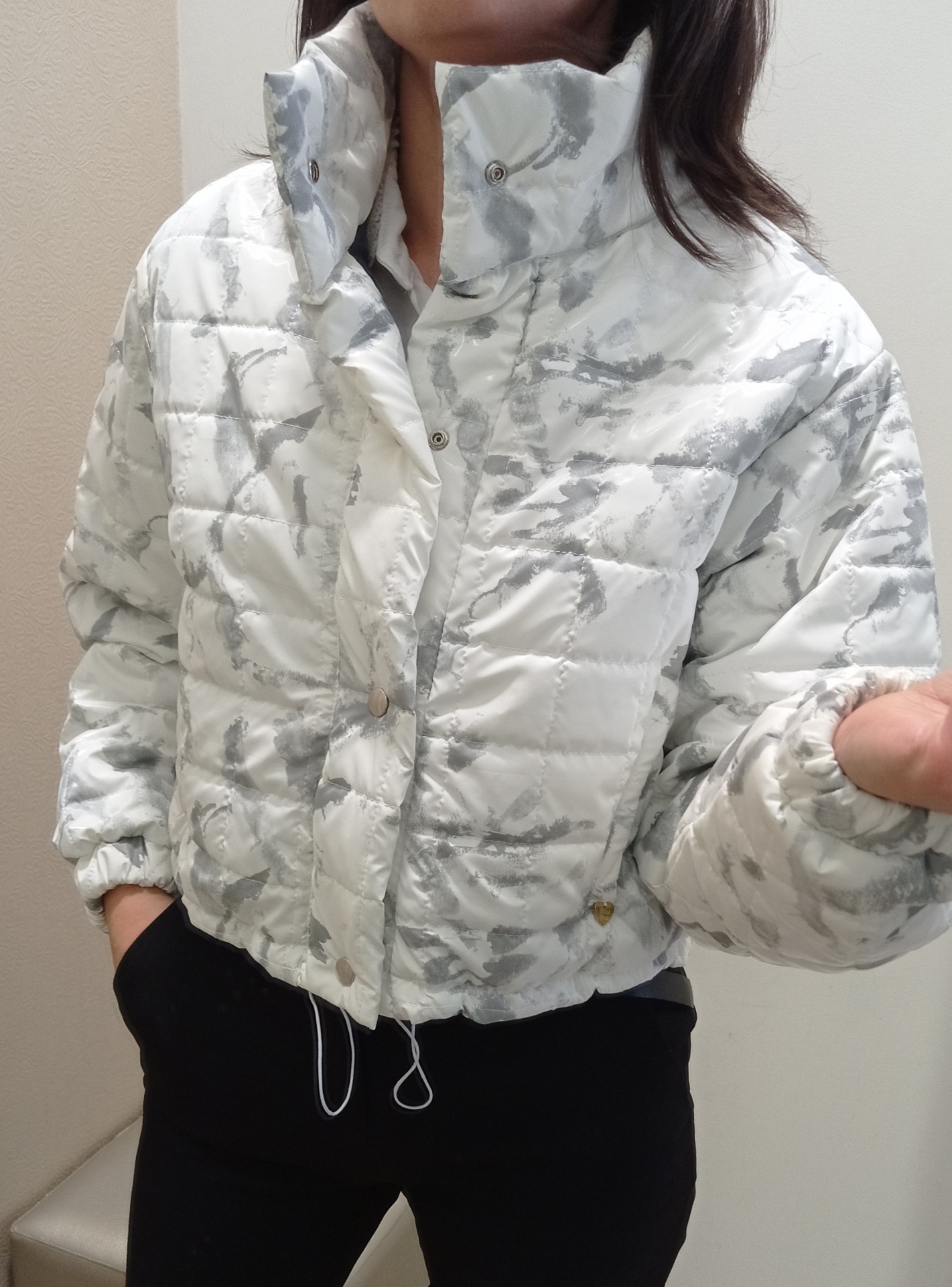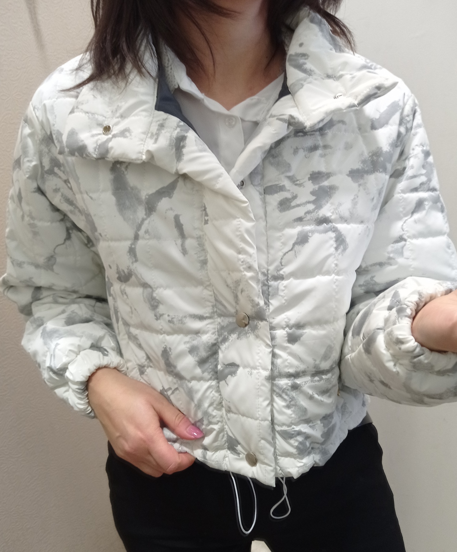 Kispo curto, estilo bomber em branco com cinza.