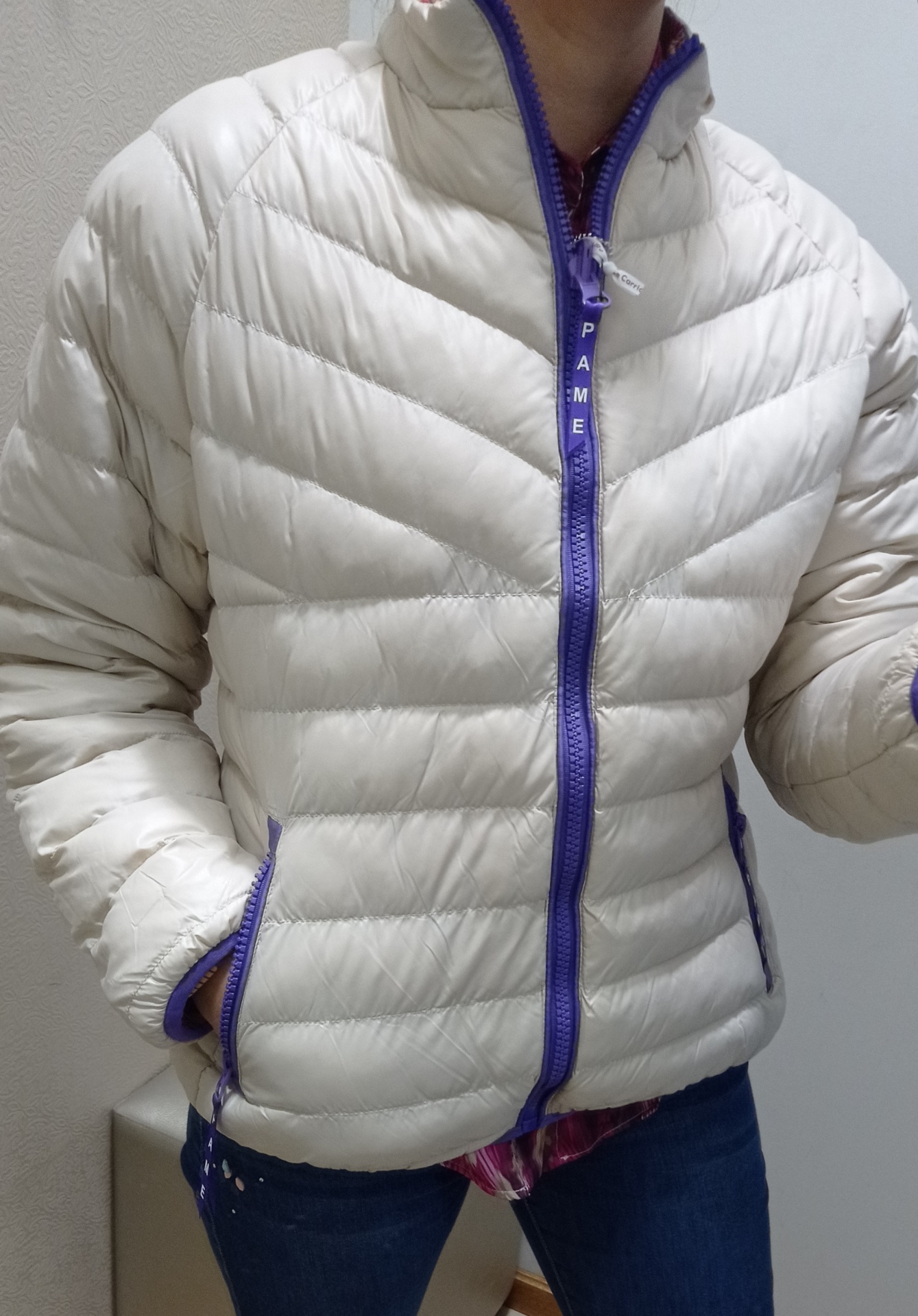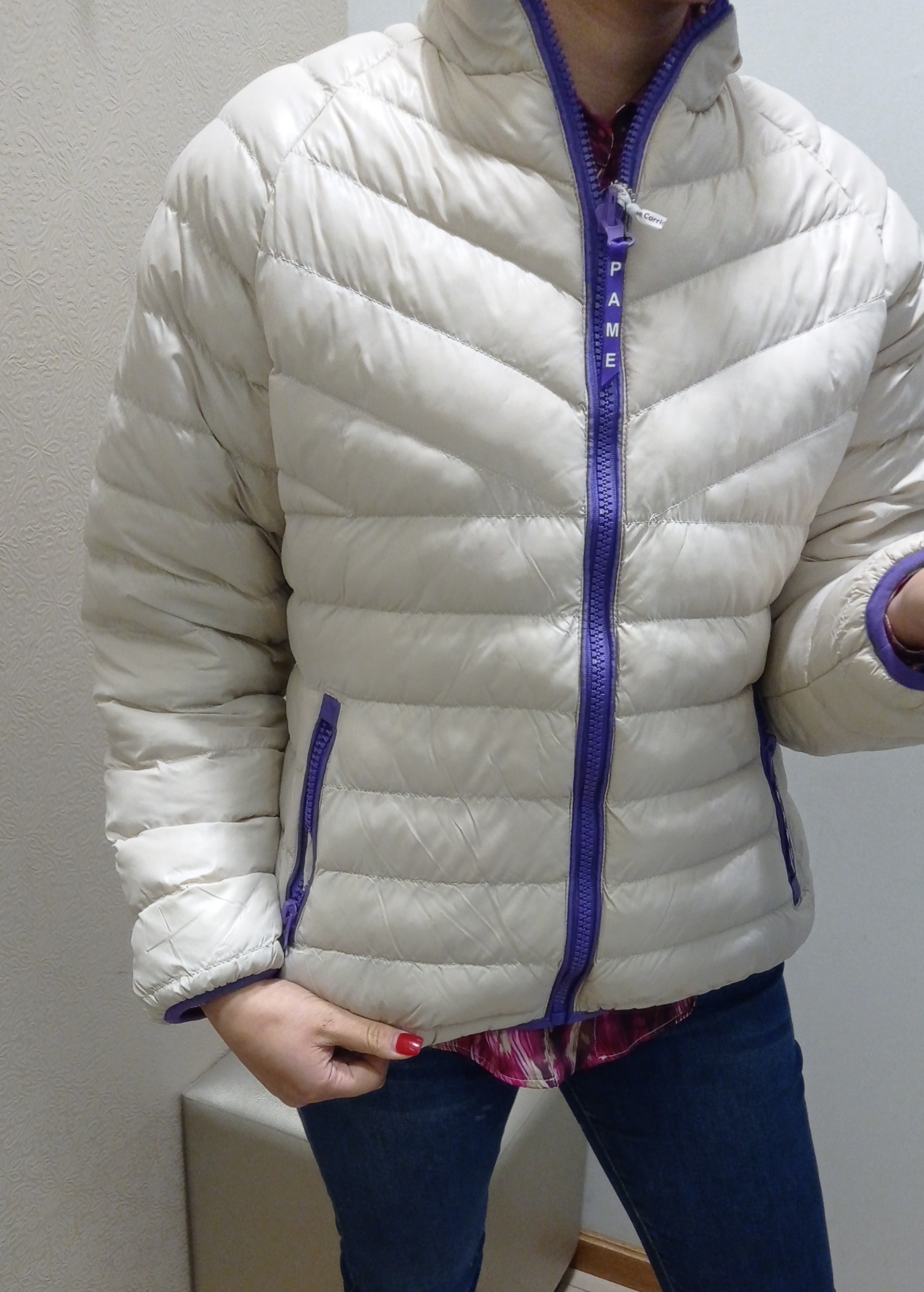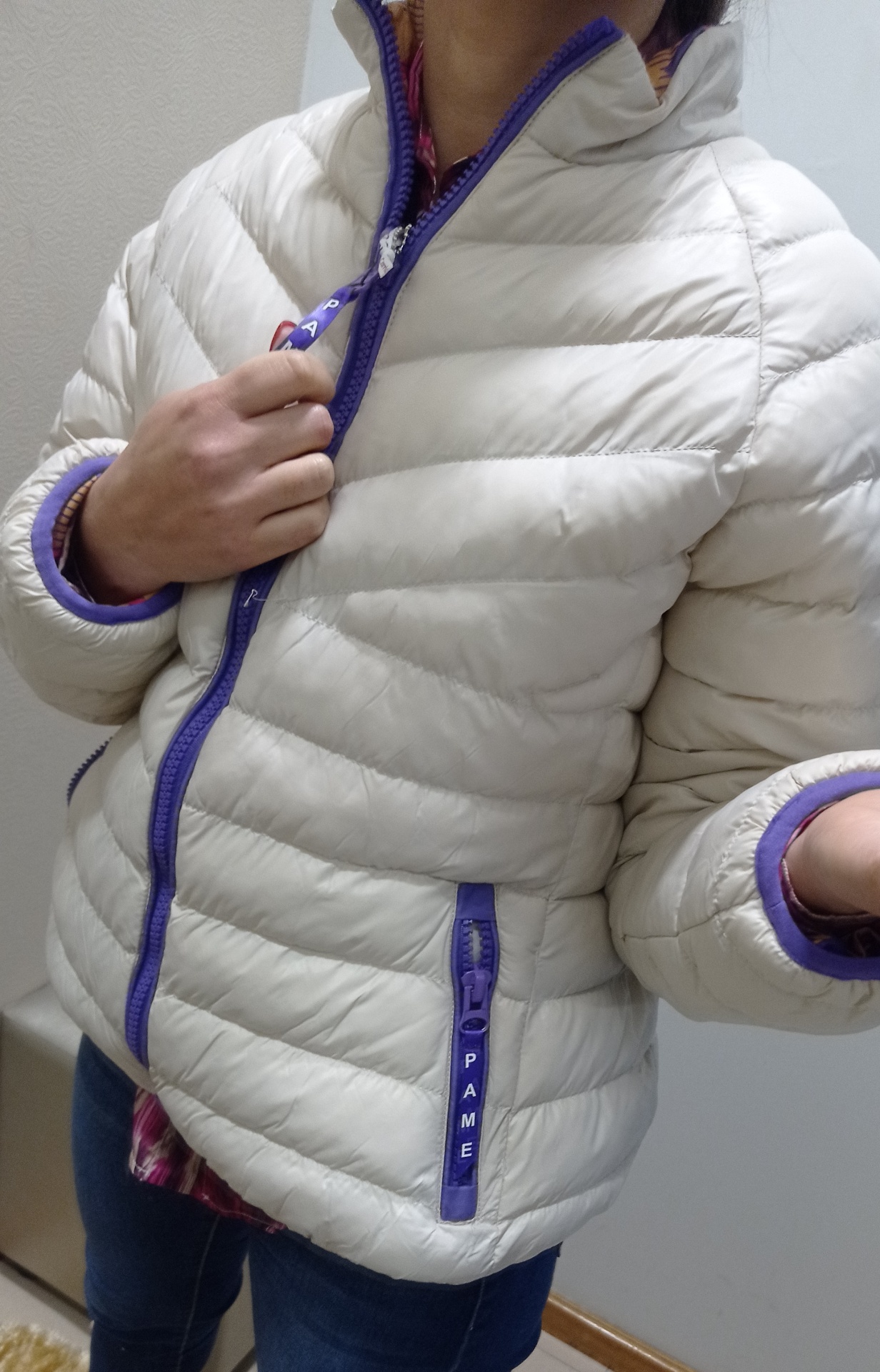Kispo curto, reversível. De um lado axadrezado, do outro liso.