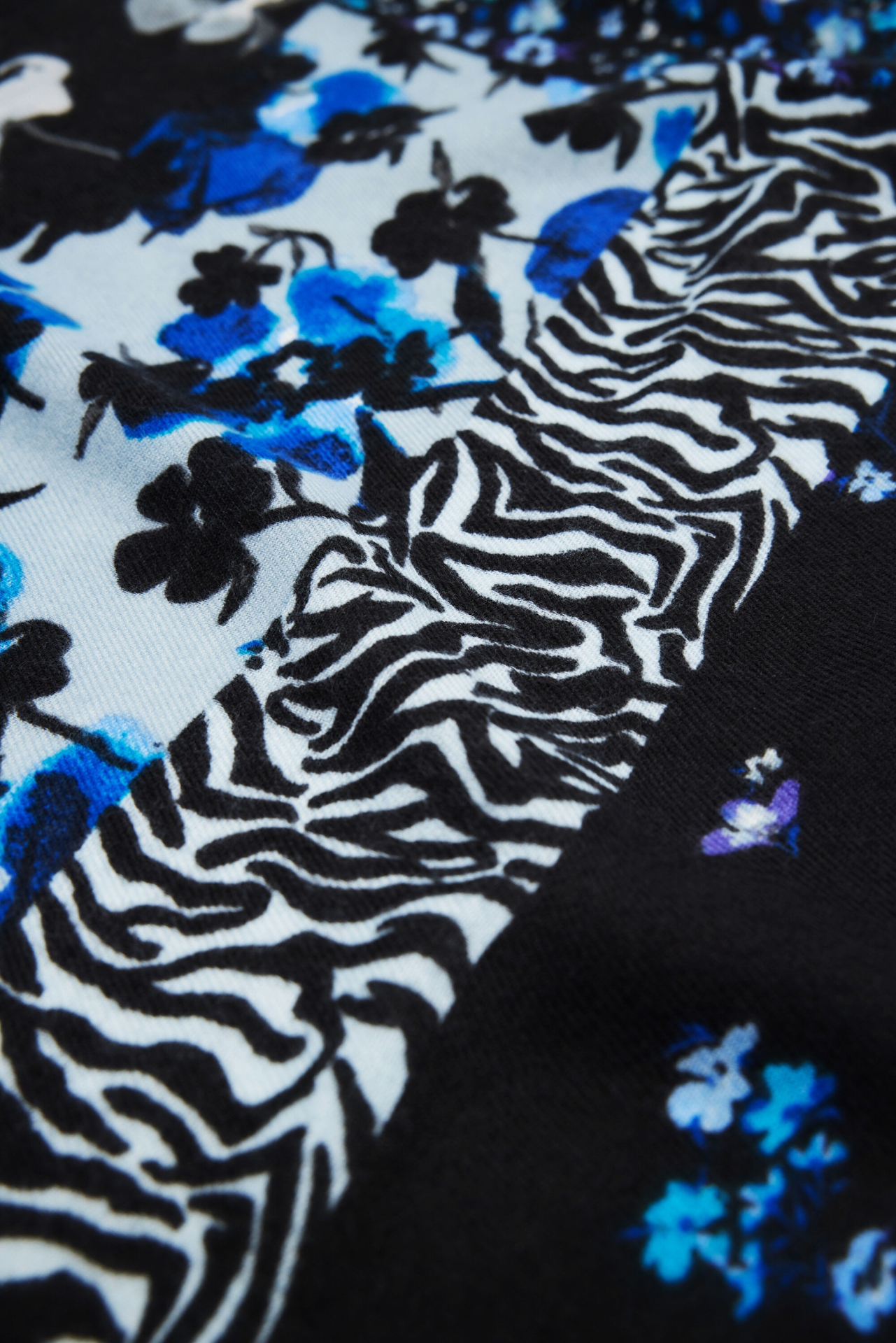 Padrão em tons de preto e azul.