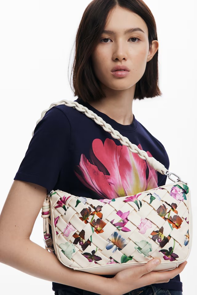Mala pequena em cor bege, com duas alças incluídas.
