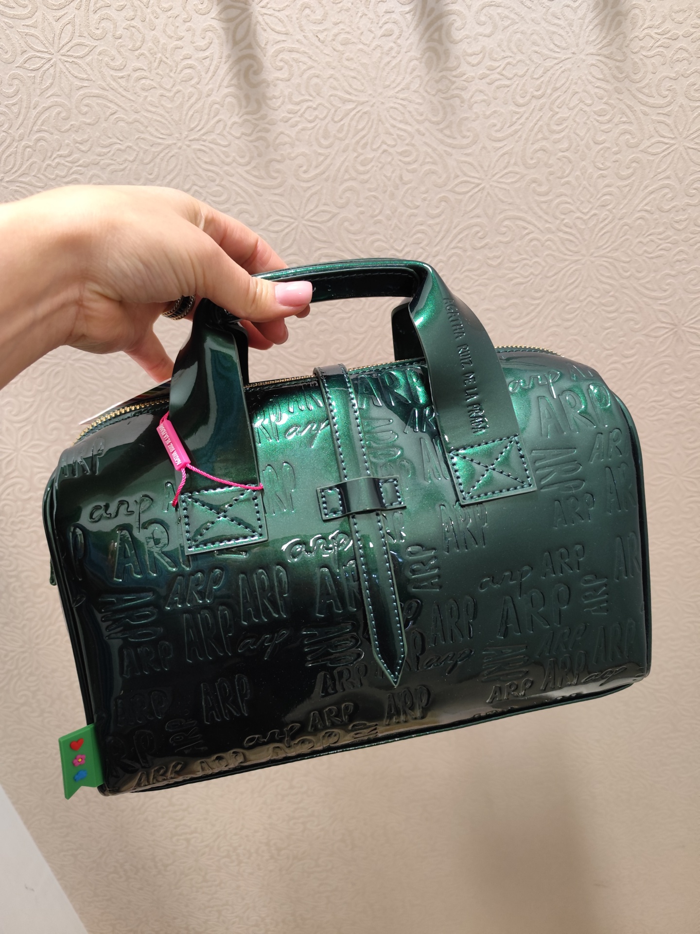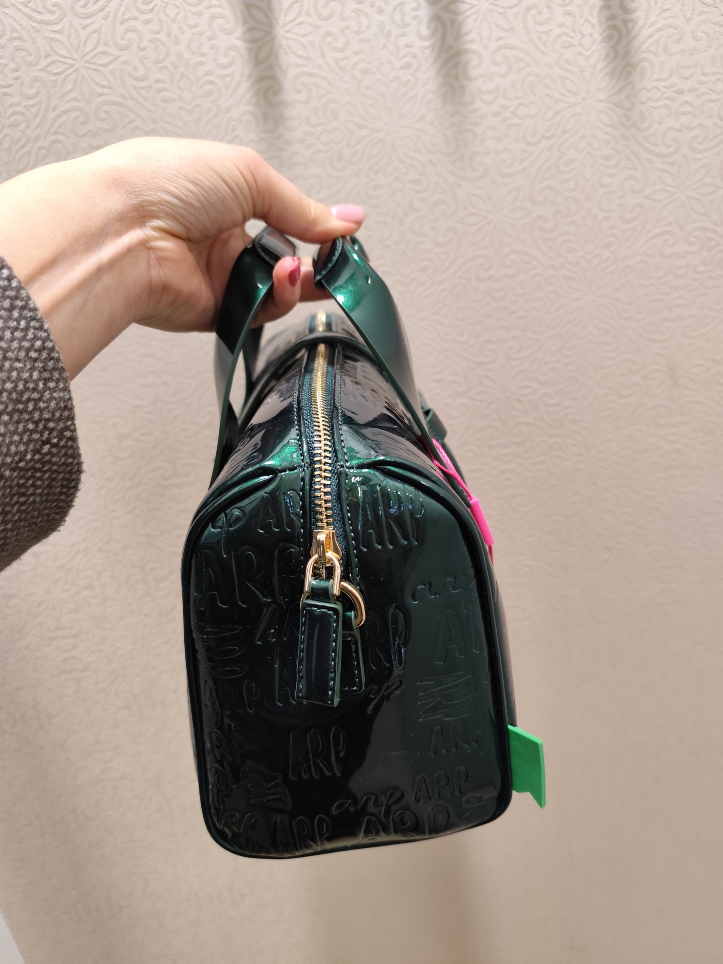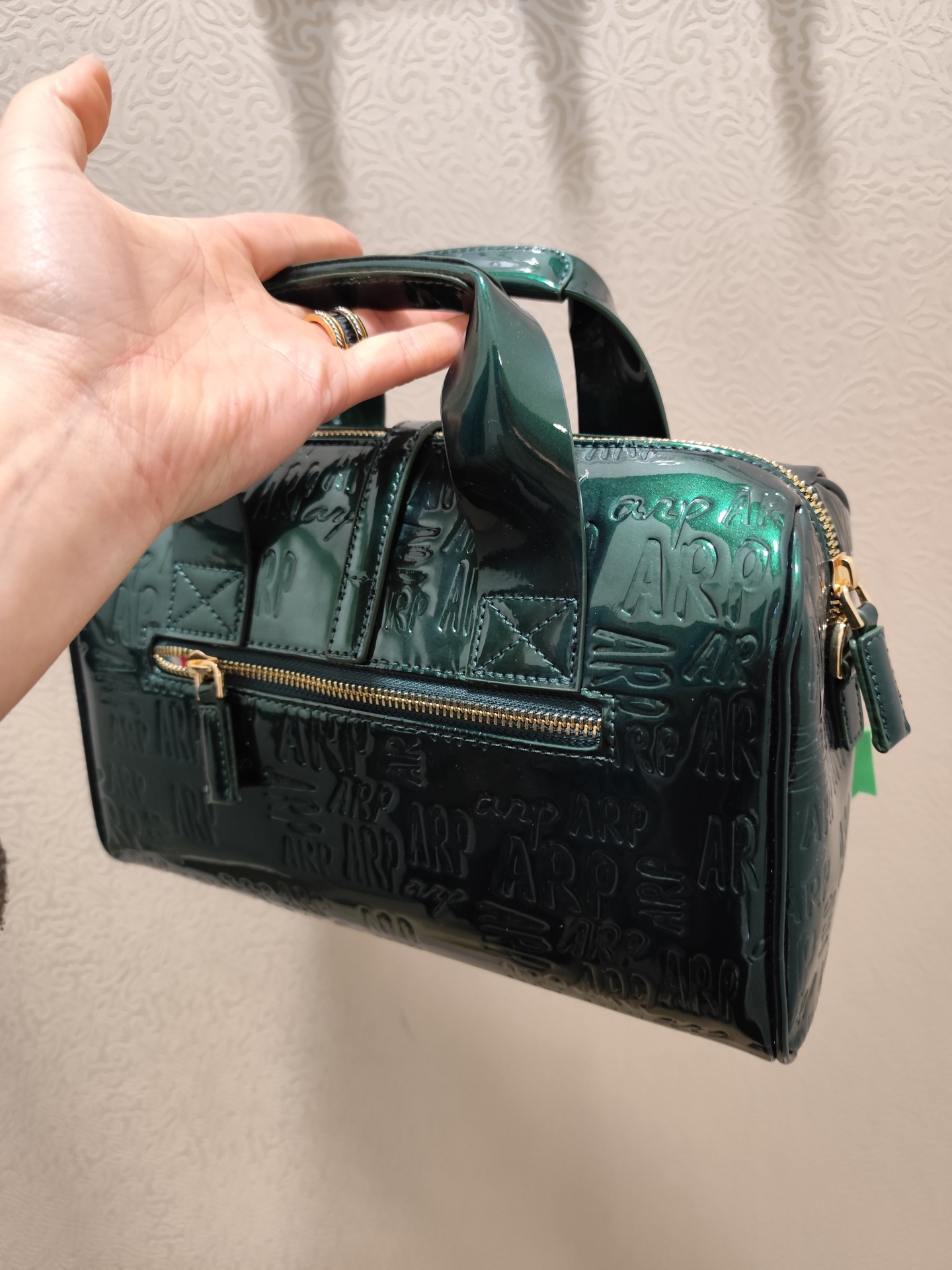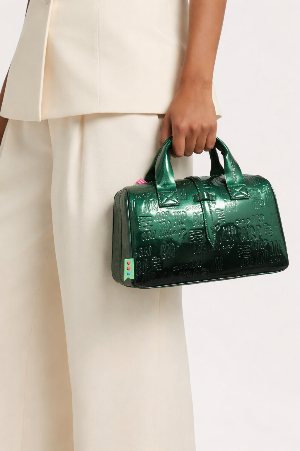 Com um design moderno e em verniz brilhante, esta mala apresenta as letras da marca gravadas, adicionando um toque de exclusividade. A sua alça a tiracolo em pele oferece versatilidade, permitindo-lhe usá-la confortavelmente ao ombro ou cruzada no corpo.
