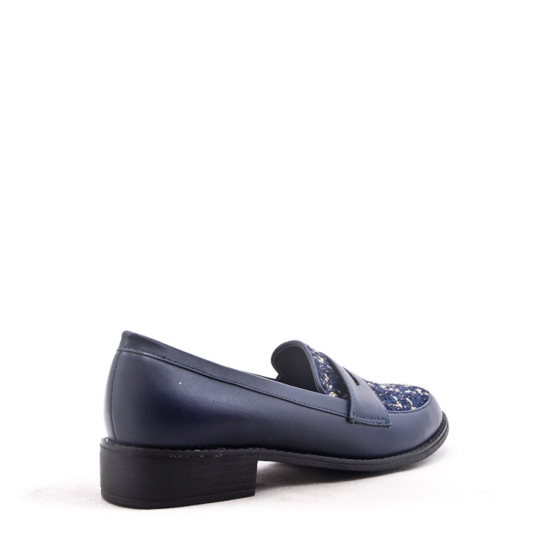 Sapato mocassim azul com tecido entrelaçado na parte superior