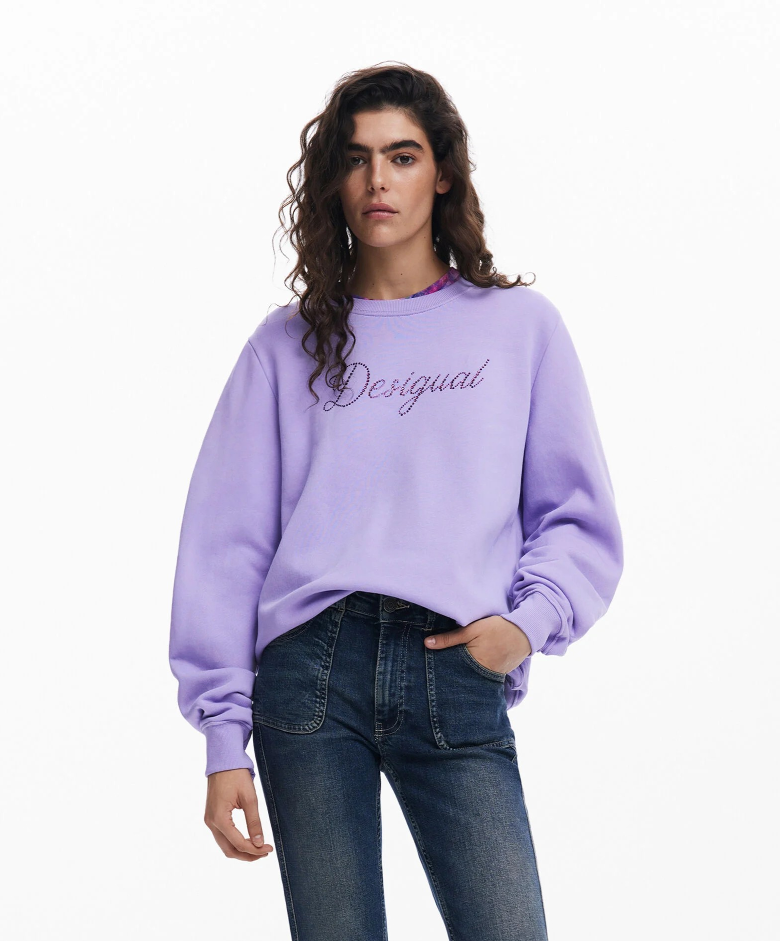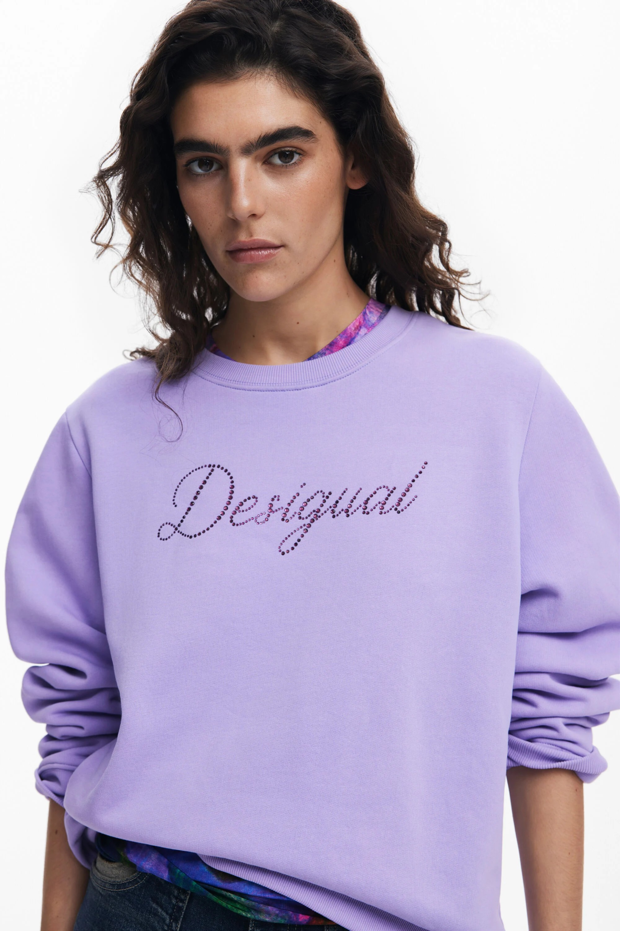 Casaco desportivo lilás com padrão 'Desigual' em strass