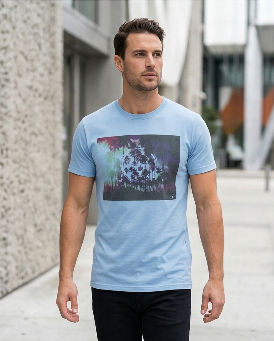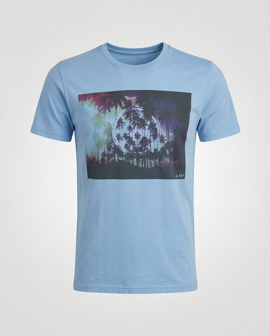 T-shirt azul, em algodão.