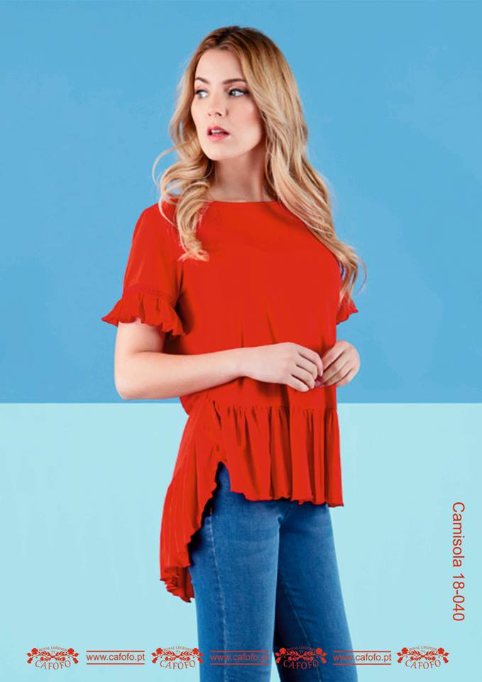 T-shirt/Tunica de manga curta com folhos e renda na anca e mangas
