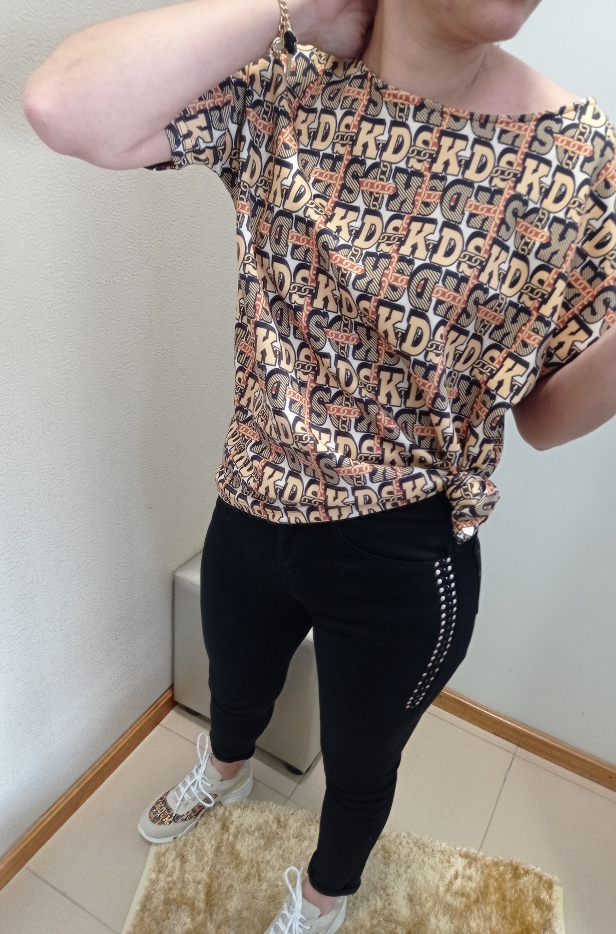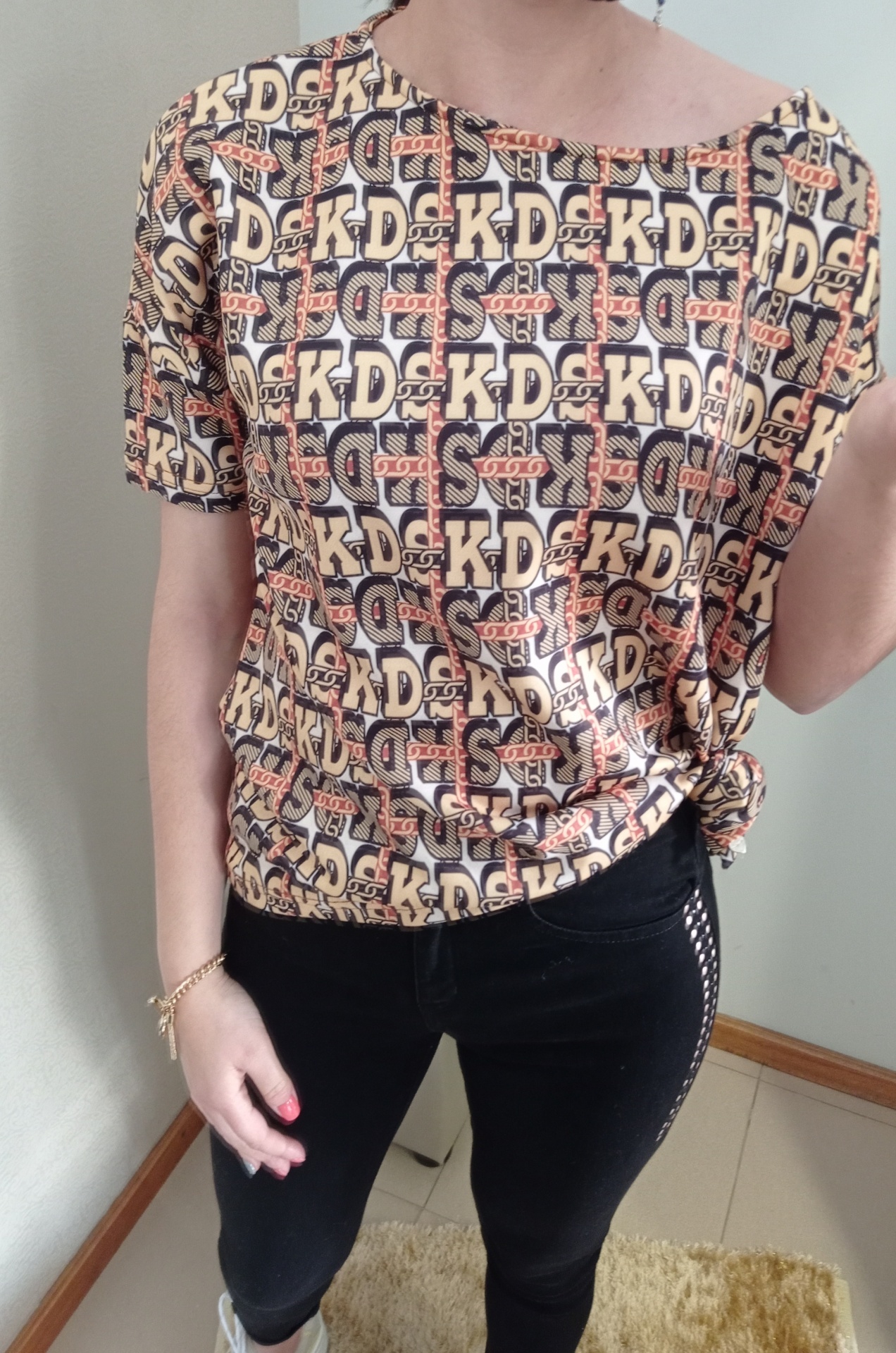 T-shirt oversize, em mouse. Ombros descaídos.
